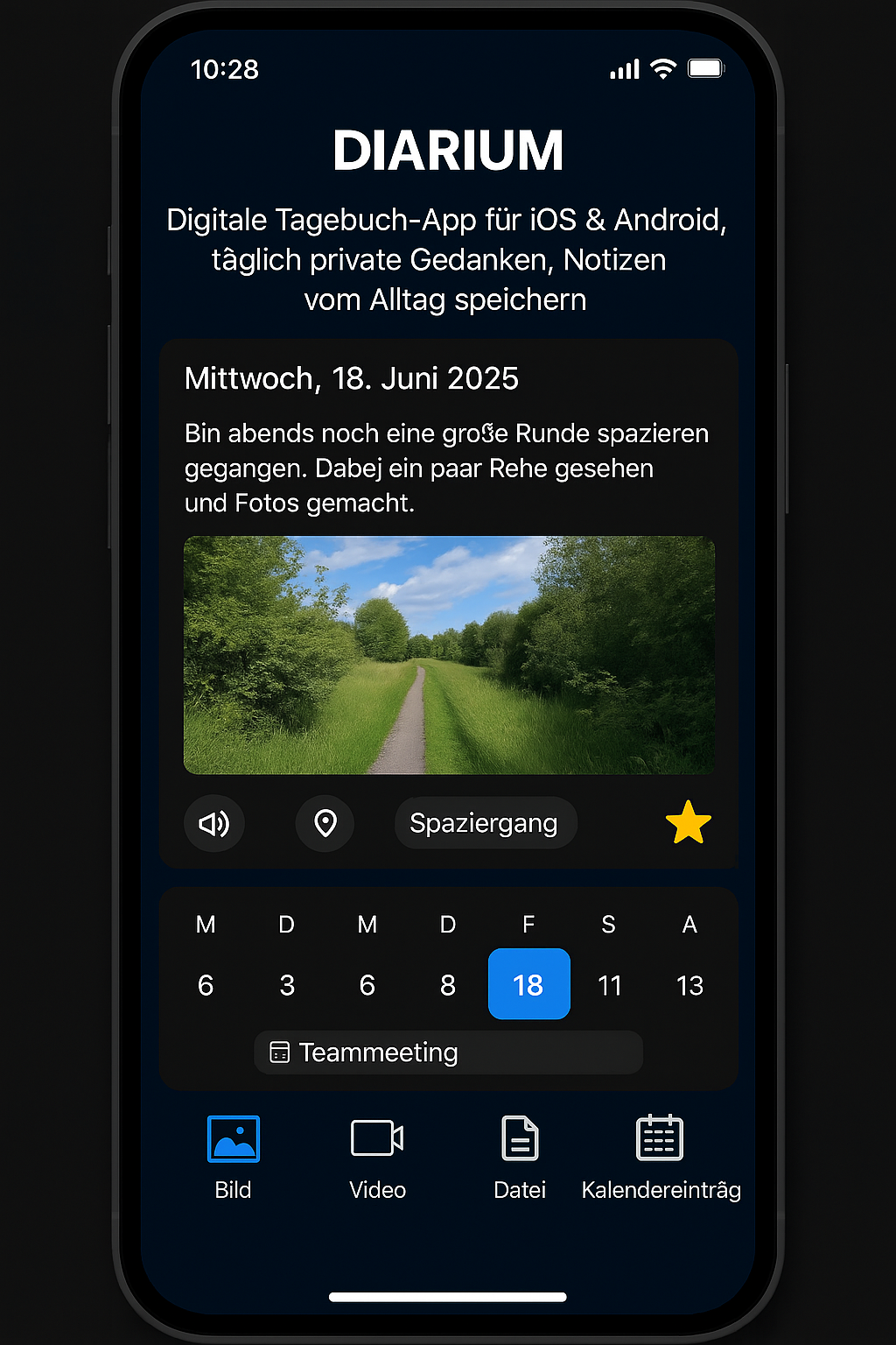 Ich nutze seit knapp über einem Jahr die iOS App Diarium als digitale Tagebuch-App – und das täglich oder zumindest fast täglich. Für mich ist das ein Teil meines Alltags geworden. In der App dokumentiere ich meine Gedanken, notiere, was passiert ist, und hänge manchmal auch ein Foto oder ein kurzes Video an.