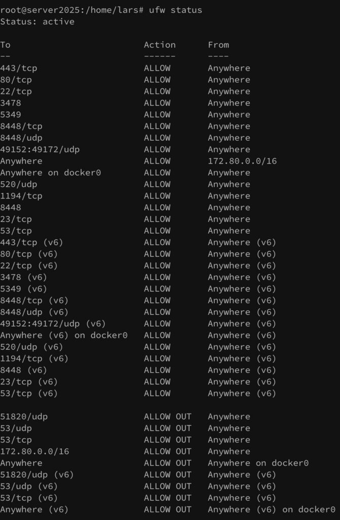 Ich hatte auf meinem Heimserver eine Fediverse-Instanz am Laufen. Die FRITZ!Box war so konfiguriert, dass die Firewall für diesen Server deaktiviert war und die Portfreigaben offen standen. Klar, ich hatte die unkomplizierte Firewall von Debian (UFW) eingerichtet und korrekt konfiguriert. Aber Docker – das freche Ding – hat sich eigenmächtig Ports geöffnet. (Was ich nicht bedacht hatte – aber normal ist) Plötzlich ging der Upload-Traffic durch die Decke: 40 Mbit/s wurden dauerhaft genutzt, und ich hatte keine Ahnung, wohin die Daten flossen.