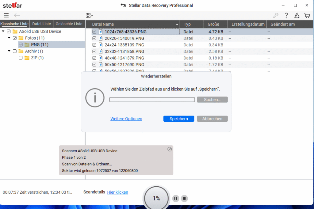 Auch USB-Sticks, externe Festplatten und Speicherkarten werden unterstützt. Praktisch, wenn Daten direkt von Wechseldatenträgern verschwunden sind.