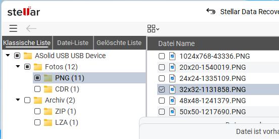 Viele Jahre lang lief bei mir alles unter Linux – bis ich für diesen Test ausgerechnet wieder ein Windows brauchte. Denn Stella Data Recovery gibt es nur für Windows. Also schnell eine VM aufgesetzt, ein wenig geflucht, die Gasterweiterungen deaktiviert, und siehe da: Das Tool startete endlich. Mit meinem Gratis-Lizenzschlüssel konnte ich direkt die Vollversion testen – und gleich beim ersten Lauf hat Stella eine alte ZIP-Datei und mehrere Fotos zurück gezaubert. Das war ein bereits formatierter USB-Stick, den ich ewig nicht mehr genutzt hatte.