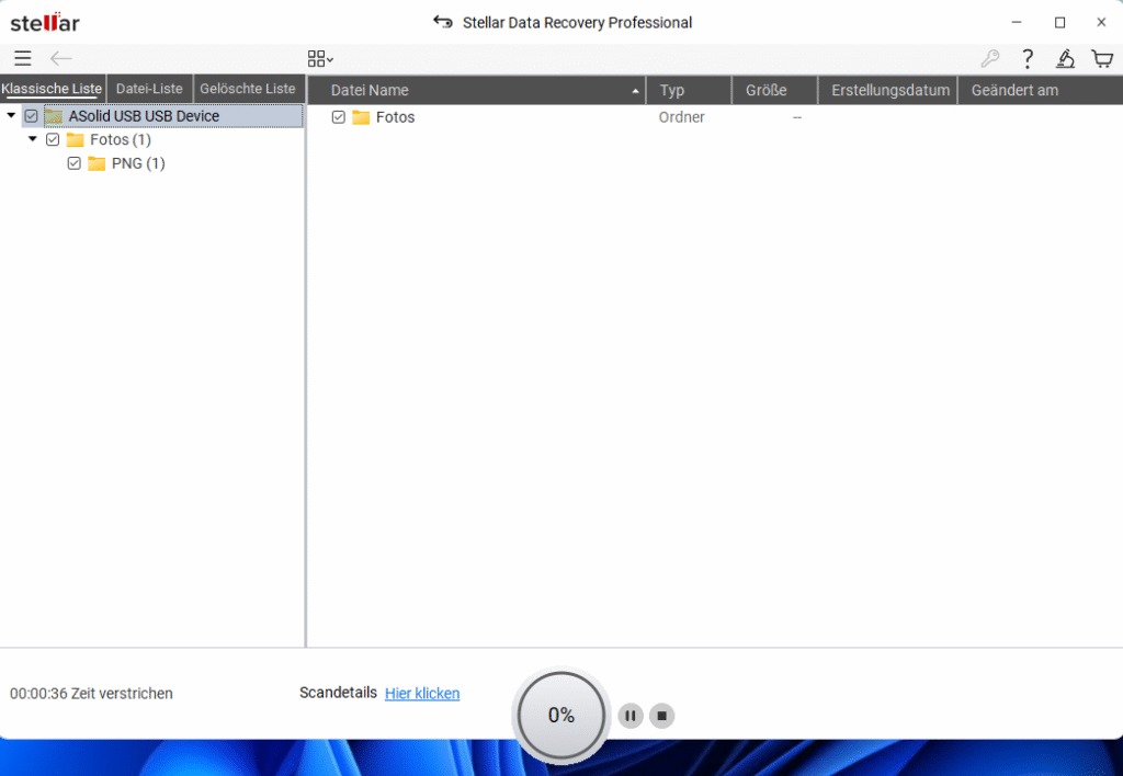 Wenn eine Partition nicht mehr lesbar ist oder ein Laufwerk formatiert wurde, bietet Stella einen Tiefenscan an. Der dauert zwar länger, bringt aber oft noch deutlich mehr Ergebnisse.